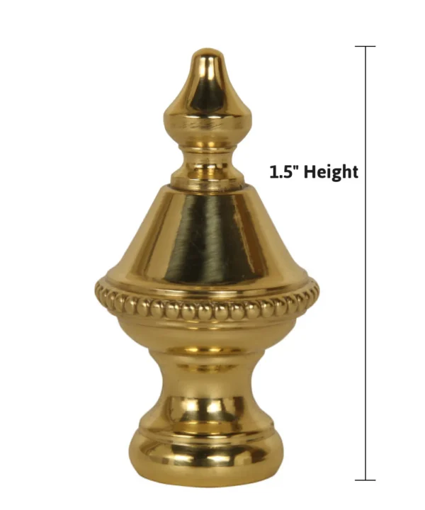 Add a touch of elegance to your lamp with this beaded knob spire lamp finial in polished brass. Designed with intricate detailing, this finial brings a refined finishing touch to any lamp. Its classic polished brass finish complements a variety of lamp styles, making it a versatile and stylish accessory for your home decor. Measuring 1.5 inches in height, this finial is the perfect size to enhance the look of your lamps without overpowering the design.