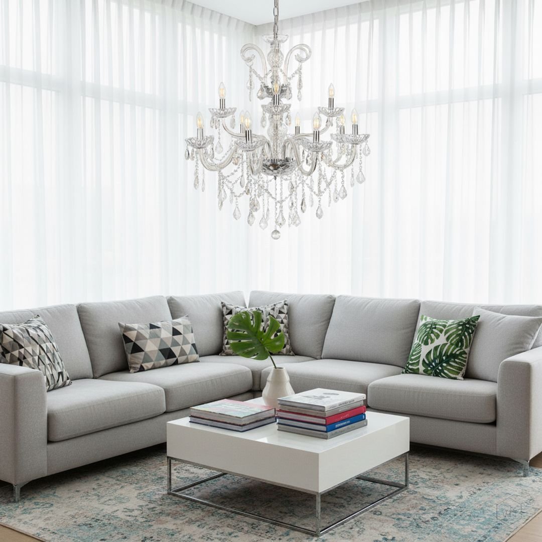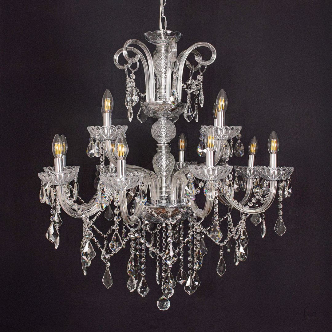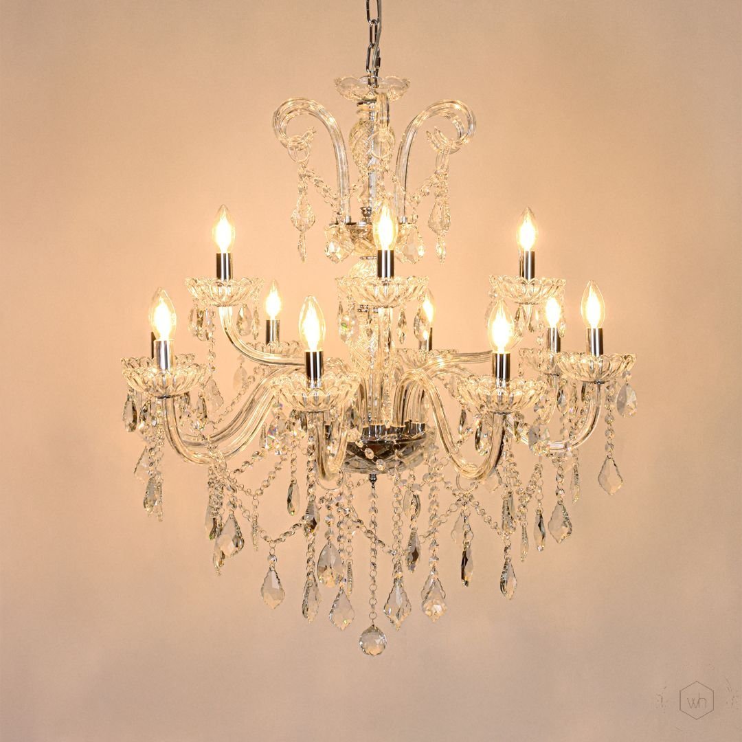 The Belmora 12-Light Crystal Chandelier is a breathtaking centerpiece crafted with transparent glass arms, intricate crystal detailing, and a polished metal frame. Designed for larger interiors, it delivers brilliant illumination and a luxurious presence that elevates any space with timeless elegance.