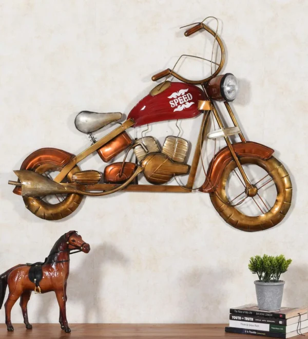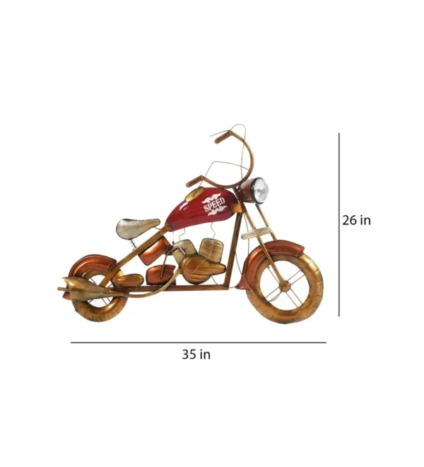 Enhance the charm of your living space with the Brown Metal Big Wall Hanging Bike Showpiece with LED. This wall art combines artistic design with functionality, featuring a striking bike silhouette in metal, complemented by integrated LED lights. The warm brown tones and LED lighting bring a cozy, inviting atmosphere to any room, making it perfect for living rooms, corridors, or even your home office. A great statement piece for bicycle enthusiasts or lovers of unique decor.