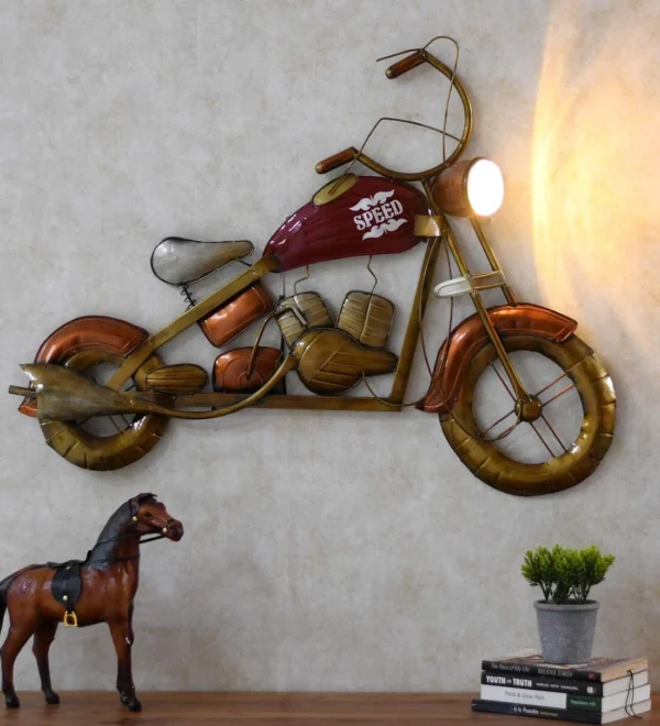 Brown Metal Big Wall Hanging Bike Showpiece with LED