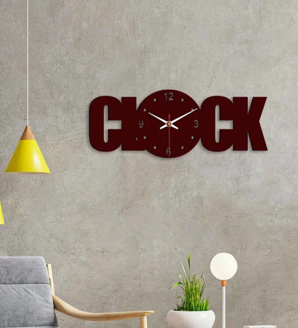 Bring a playful yet stylish element to your space with this Clock Text Shape Brown Wood MDF Wall Clock. Designed in the shape of the word “Clock,” this unique piece adds a fun, modern twist to any room. The rich brown wood finish provides a natural, warm feel, making it perfect for contemporary living rooms, offices, or bedrooms. Crafted from durable MDF, this clock is as functional as it is eye-catching, ensuring accurate timekeeping while doubling as a creative decor piece.