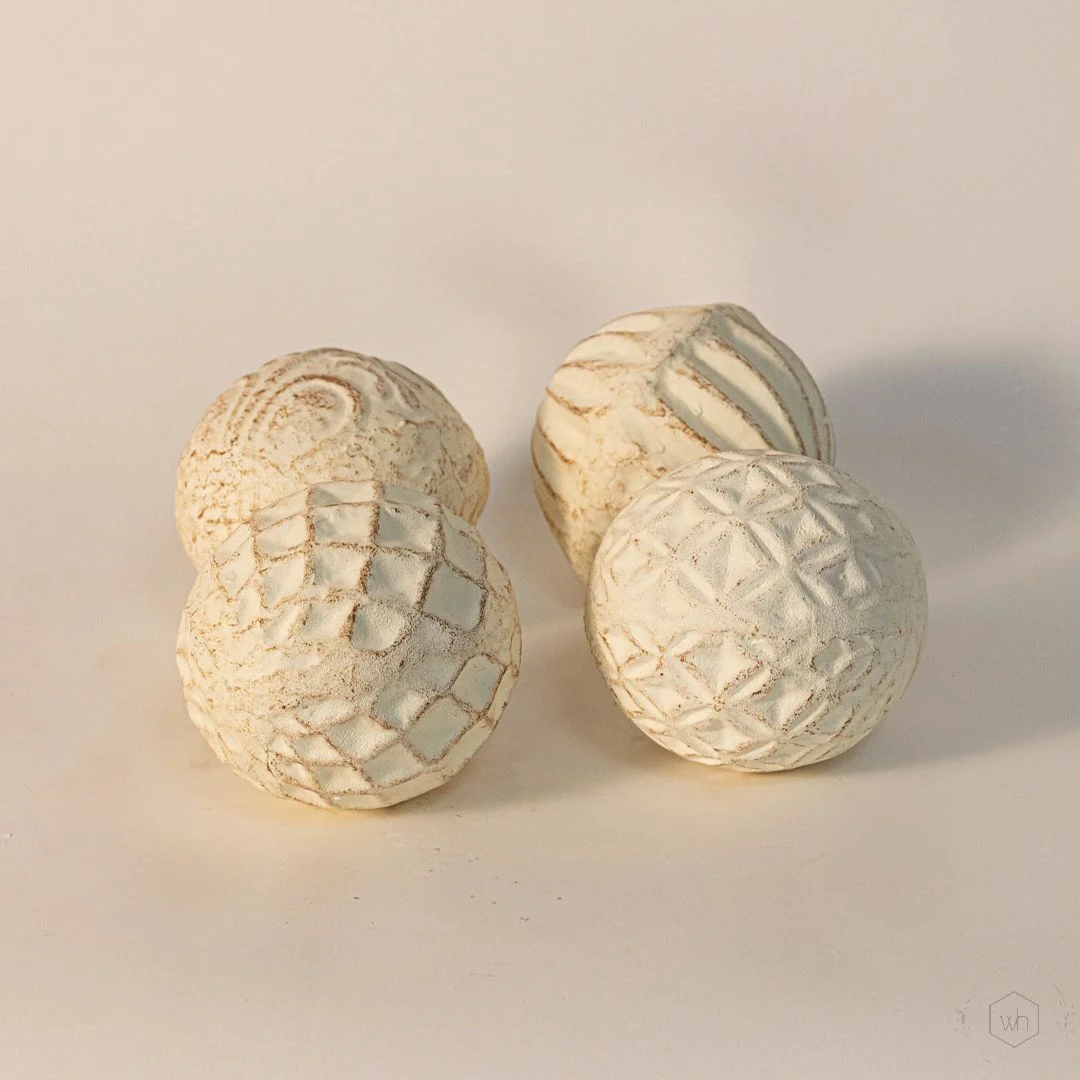 Bring artisanal charm and natural elegance into your home with the Kallos Decorative Set of 4 Terracotta Orbs – Ivory. Each orb is handcrafted from durable terracotta and finished in a soft ivory tone, making this set of four a versatile décor accent for modern, farmhouse, or boho interiors. With carved detailing that adds texture and character, these decorative orbs are perfect as bowl fillers, tray accents, or shelf styling pieces.