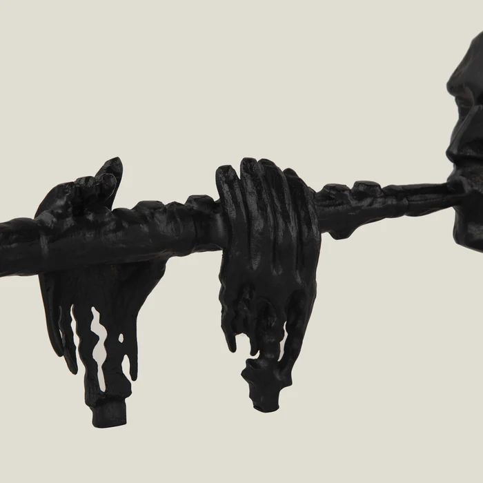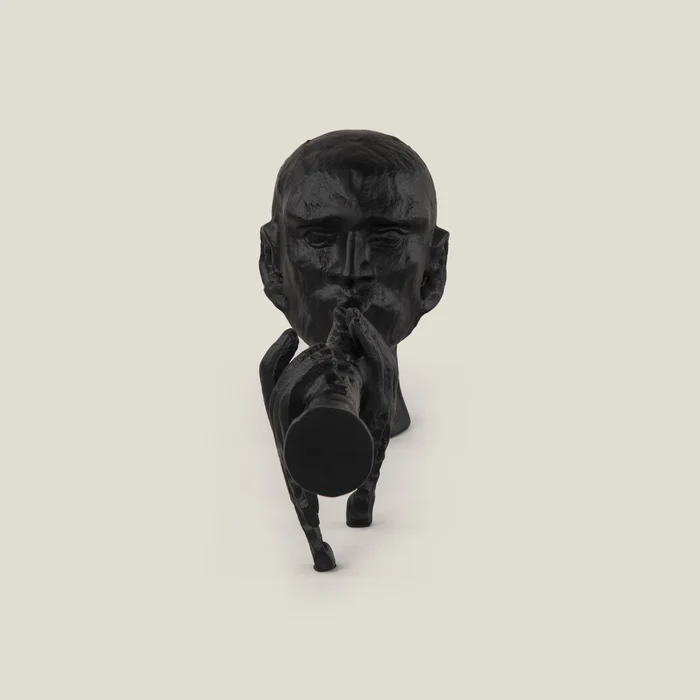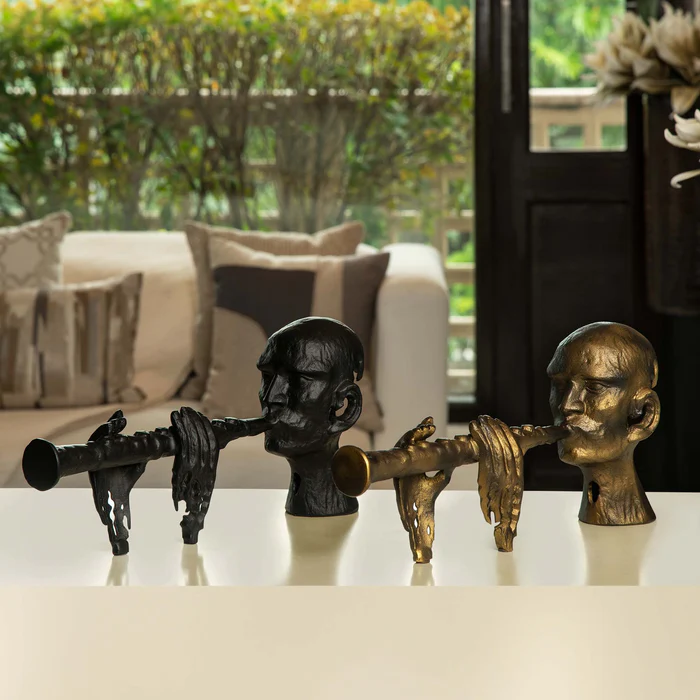 Introducing our exquisite Trumpet Man sculpture, a remarkable piece that combines artistry, history, and music to transport you back to the enchanting medieval ages. This captivating sculpture features a man’s face playing the clarinet, showcasing the mastery and grace of a skilled musician. It is meticulously crafted with attention to detail that exudes elegance and grandeur.